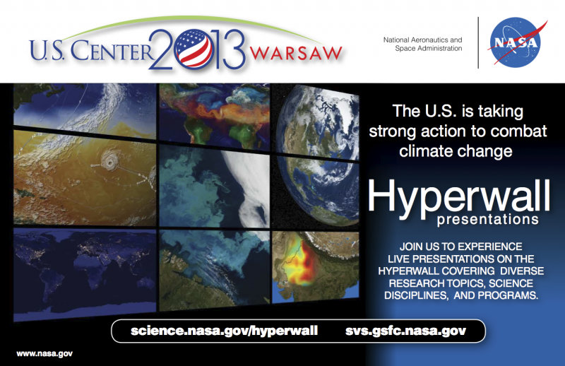 Jack Kaye [NASA Headquarters—Earth Science Associate Director for Research], Carmen Boening [NASA/Jet Propulsion Laboratory—Scientist], Cynthia Rosezweig [NASA’s Goddard Institute for Space Studies—Senior Research Scientist], and Bruce Doddridge [NASA’s Langley Research Center—Head of Chemistry and Dynamics Branch] will travel to Warsaw to support the two-week event and deliver a variety of hyperwall and side-event talks taking place in the U.S. Center. The hyperwall presentations will highlight the following climate themes: Earth’s Climate from Space, Oceans and Water Resources, Aerosols and Atmospheric Composition, and World of Change and Urbanization—click here to view the Hyperwall Content brochure. The presenters will also demonstrate the interactive Eyes on Earth application that delivers data and images from NASA’s fleet of Earth-observing satellites to home computers. During non-presentation times, Kaye, Boening, Rosenzweig, and Doddridge will serve as docents for visualizations playing on the hyperwall, providing context for using NASA data to study Earth’s climate.